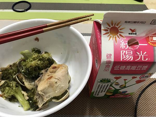 晚餐:雞肉花椰菜+低糖高纖豆漿+半顆水梨