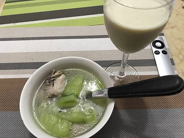 早午餐:絲瓜雞湯+150ml無糖豆漿