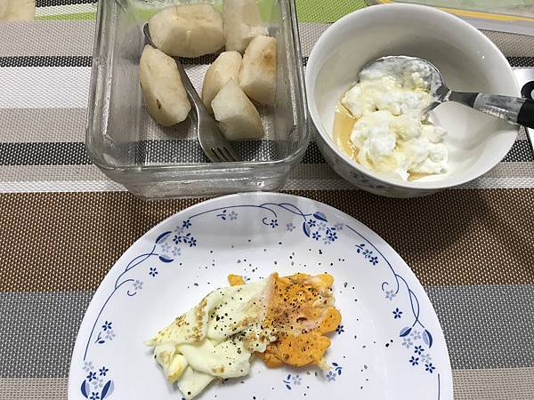 下午茶:COSTCO希臘優格 200ml+蜂蜜10g+水梨+無油荷包蛋一顆