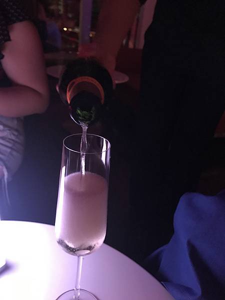 接著倒香檳,好喜歡香檳細緻的泡泡不斷的往上冒。