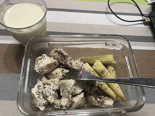 消夜:水煮雞胸肉+玉米筍
