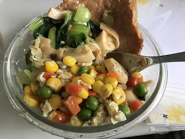 早餐:希臘優格200ml+蜂蜜10ml+雞胸肉200g+玉米筍